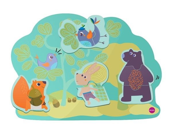 В наборевключает в себя магнитное поле и 4 пазла: два пазла из двух деталей и два из трех