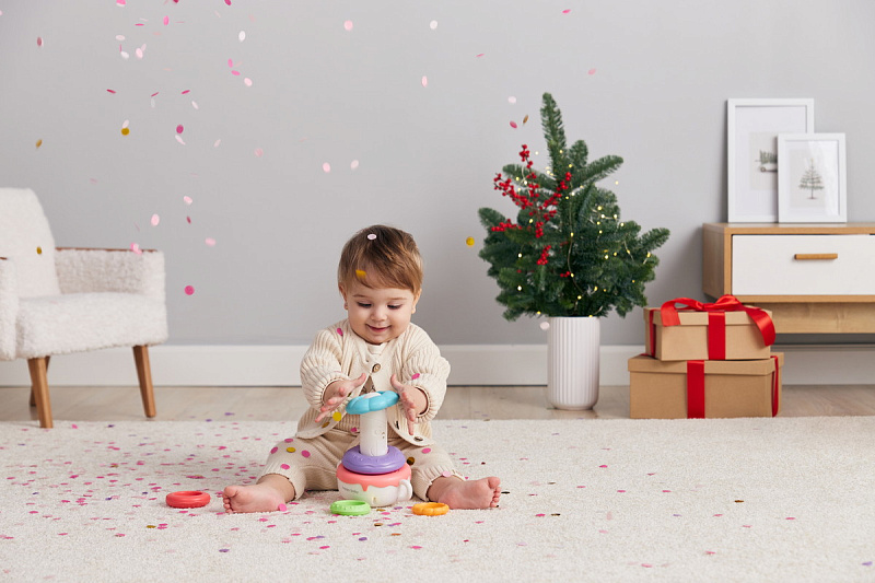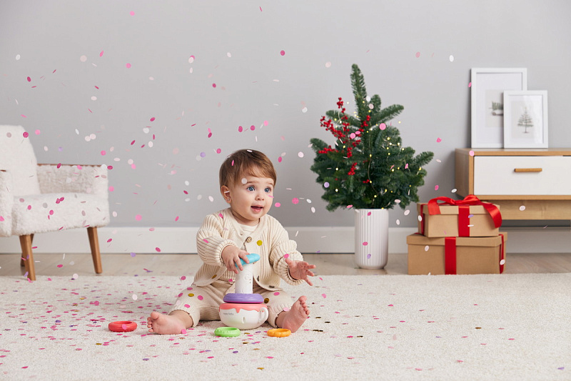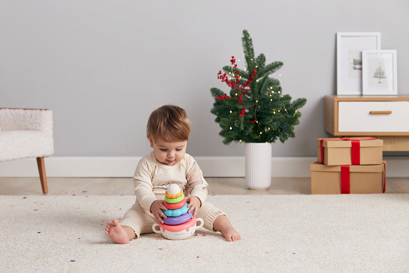 PYRAMID PIE – игрушка с секретом. Может использоваться не только как традиционная пирамидка, но и как музыкальная игрушка-неваляшка. 4 песни и 5 встроенных звуковых эффектов помогают развивать слух малыша. Кольца разной толщины, диаметра и фактуры учат сравнивать цвета и формы предметов. Собирание пирамидки тренирует логику, координацию, мелкую моторику. Неваляшка развеселит малыша, наблюдение за ней поможет в развитии зрения.
