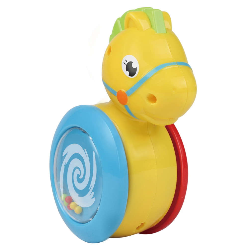 Увлекательные игры с лошадкой-неваляшкой способствуют развитию у малышей тактильных ощущений, реакции, координации движений и слуха.