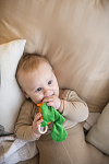 * Повесьте игрушку на коляску или кроватку, чтобы ребенок мог играть с ней во время прогулки или сна.