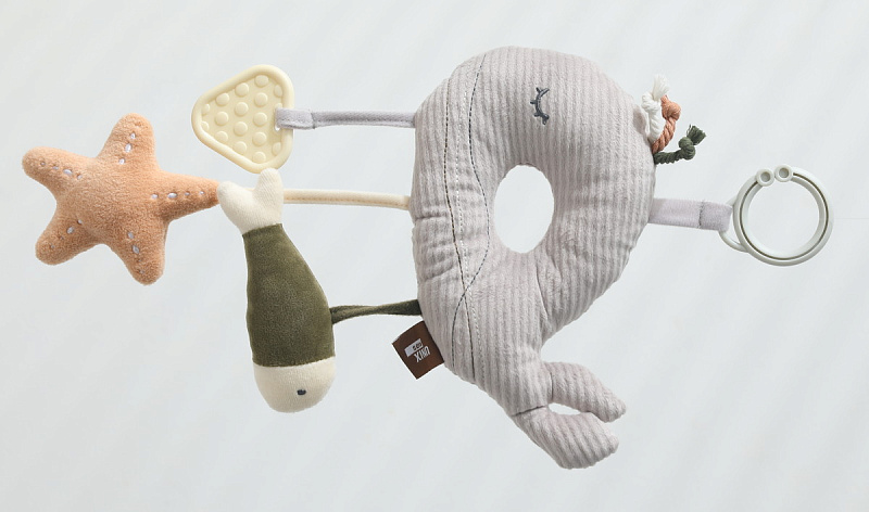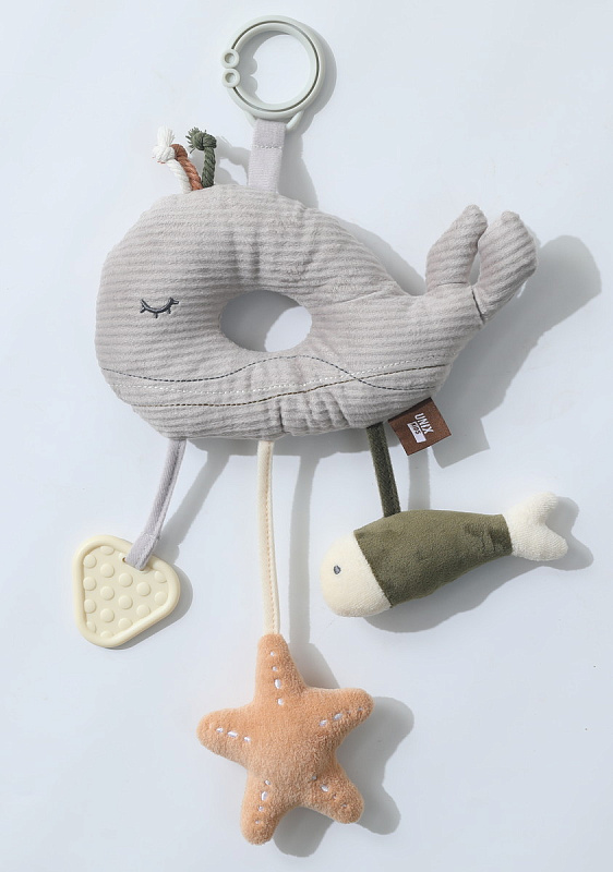 Маленькая игрушка для детей способствует развитию важнейших сенсорных навыков у детей младшего возраста. Благодаря своей форме и фактуре она стимулирует мелкую моторику рук и пальцев, развивает тактильные ощущения, улучшает координацию движений и укрепляет хватательные рефлексы. Необычный дизайн с подвесной звездочкой и рыбкой привлекает внимание ребёнка, вызывая интерес и радость.