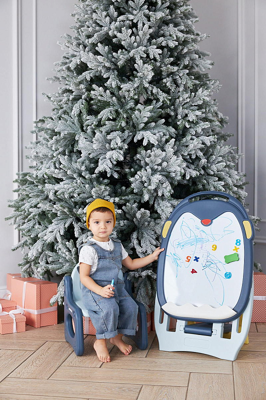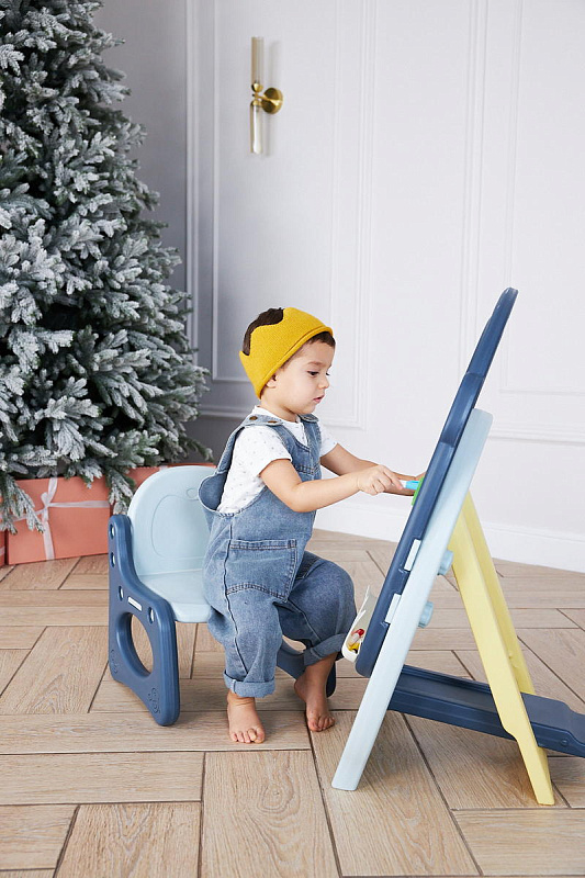 Развивающий детский мольберт UNIX Kids магнитно-маркерный со стульчиком Blue