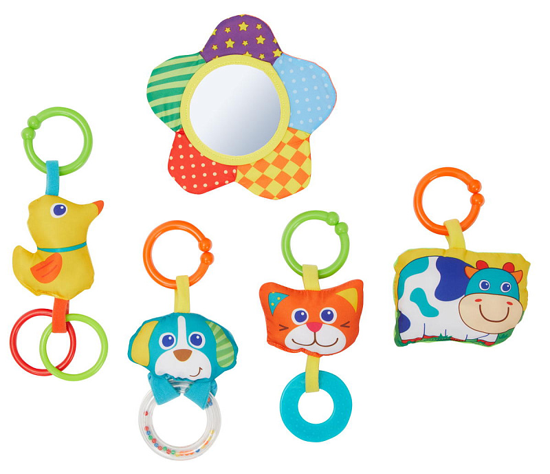 Забавные игрушки, которые можно повесить на мягкие дуги, также станут ребенку замечательными компаньонами в изучении окружающего мира. За ними интересно наблюдать, их интересно трогать и играть. Каждая игрушка имеет свою особенность, которая поможет малышу в развитии мелкой моторики, познанию звуков, текстур, цветов и координации движений.