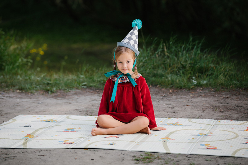 - Главный плюс: можно аккуратно сложить по предусмотренным линиям и брать с собой на пикник.