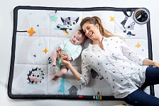 Большой развивающий коврик размером 100 на 150 см! 8 элементов для развития различных навыков. Возможность играть вместе с малышом при помощи встроенных игр и безопасного зеркальца