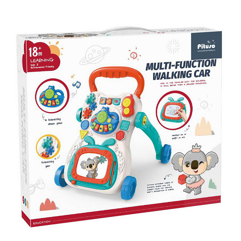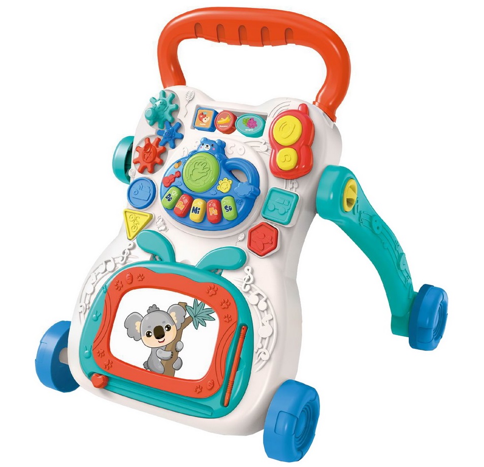 Ходунки-игровой центр 2 в 1- отличный инструмент для развития и обучения Вашего малыша. С помощью сортеров Ваш ребенок разовьет мелкую моторику рук, съемная музыкальная панель позволит ему стать исследователем, а съемный планшет для рисования сделает из него самого настоящего художника, развивая воображение. Музыкальная панель включает звуки животных, транспортного движения, детского смеха, барабаны, пианино, приятные мелодии. Желтая кнопка предназначена для регулировки громкости.