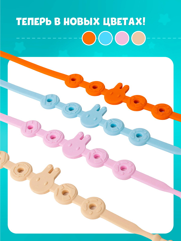 – Прочный и безопасный для детей силикон без вредных веществ в составе. Тяните, грызите, таскайте – ничего не случится!