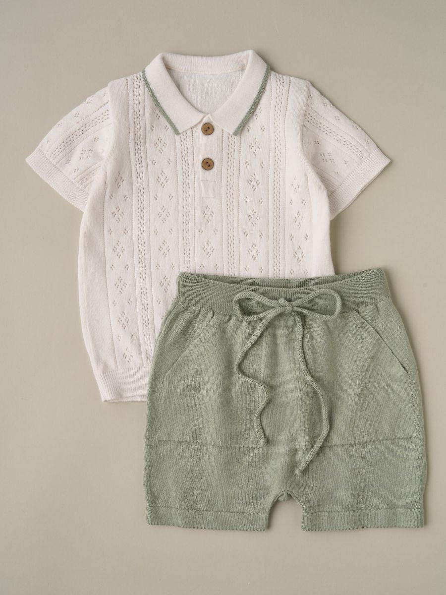 Вязаный комплект для детей из 100% хлопковой пряжи: ажурный джемпер/футболка с воротником-поло и пуговицами + мягкие вязаные шорты на шнурке и резинке. Натуральная пряжа дышит и нежно касается кожи, идеальна на каждый день, для прогулок и фотосессий. Ключевые фразы: вязаный комплект, детский комплект 100% хлопок, вязаная футболка и шорты, летний вязаный костюм.