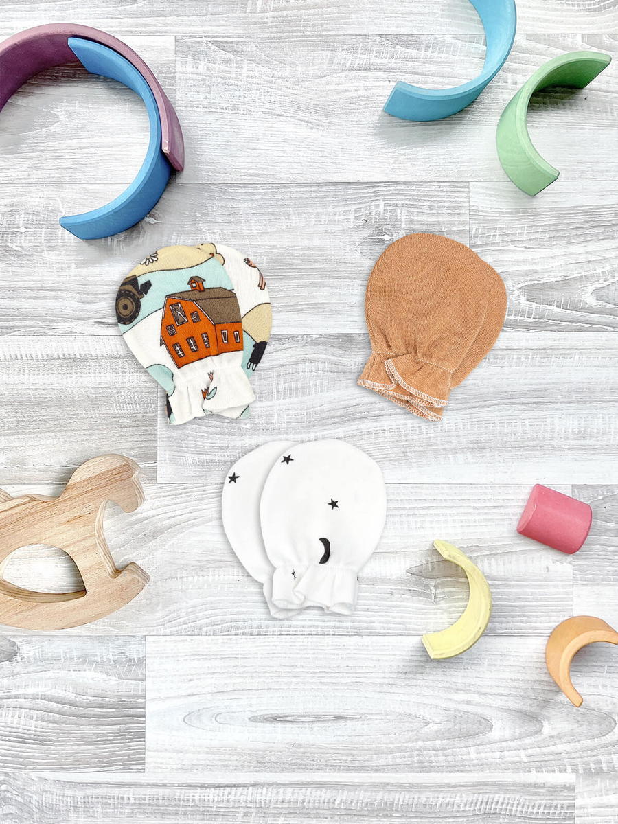 Три пары стильных рукавичек на резиночке – необходимая вещь при уходе за маленьким ребёнком. Антицарапки рассчитаны на детей с первых дней жизни и до 2-3х месяцев, пока младенец ещё не контролирует движения и может себя поцарапать. Для защиты нежной кожи от крошечных, но острых ноготков, рекомендуем надевать царапки малышу во время бодрствования и сна, а также под пеленальный кокон.