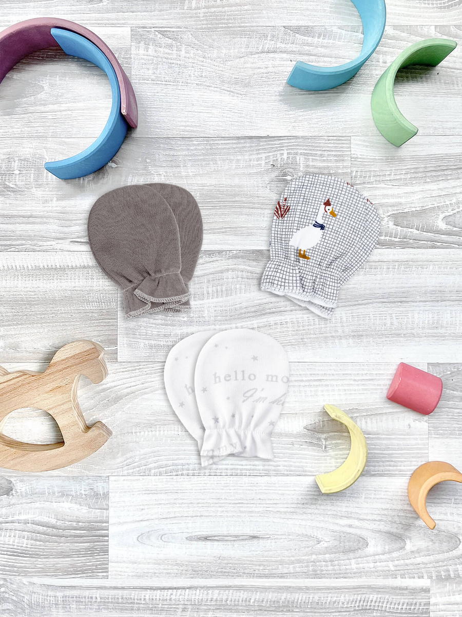 Три пары стильных рукавичек на резиночке – необходимая вещь при уходе за маленьким ребёнком. Антицарапки рассчитаны на детей с первых дней жизни и до 2-3х месяцев, пока младенец ещё не контролирует движения и может себя поцарапать. Для защиты нежной кожи от крошечных, но острых ноготков, рекомендуем надевать царапки малышу во время бодрствования и сна, а также под пеленальный кокон.
