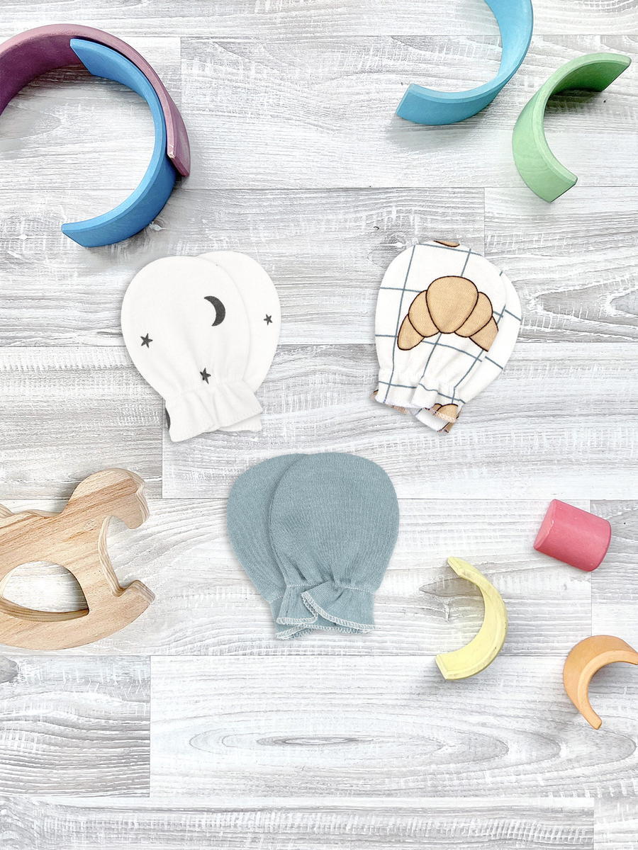 Рукавички-антицарапки Mjolk Круассаны, Ночное небо, Baby Blue сет из 3х пар