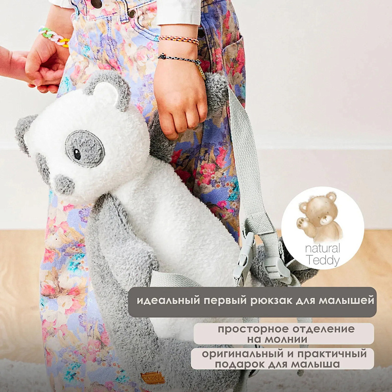 Рюкзак Nattou с изображением панды — очень милый и практичный. Мягкая ткань, имитирующая мех плюшевого мишки, делает его неотразимым для вашего малыша, при этом в нем достаточно места для мелких сокровищ, перекусов или мягких игрушек. Идеально подходит для прогулок, детского сада или ночевок у друзей.