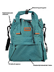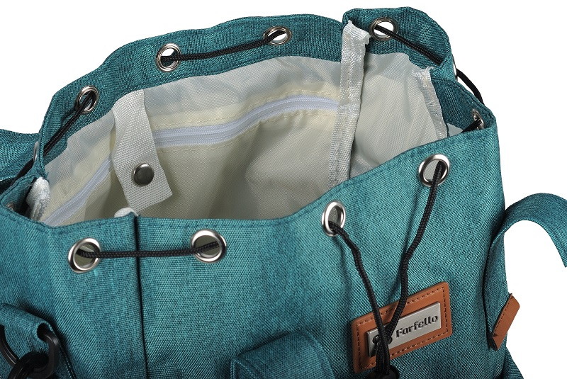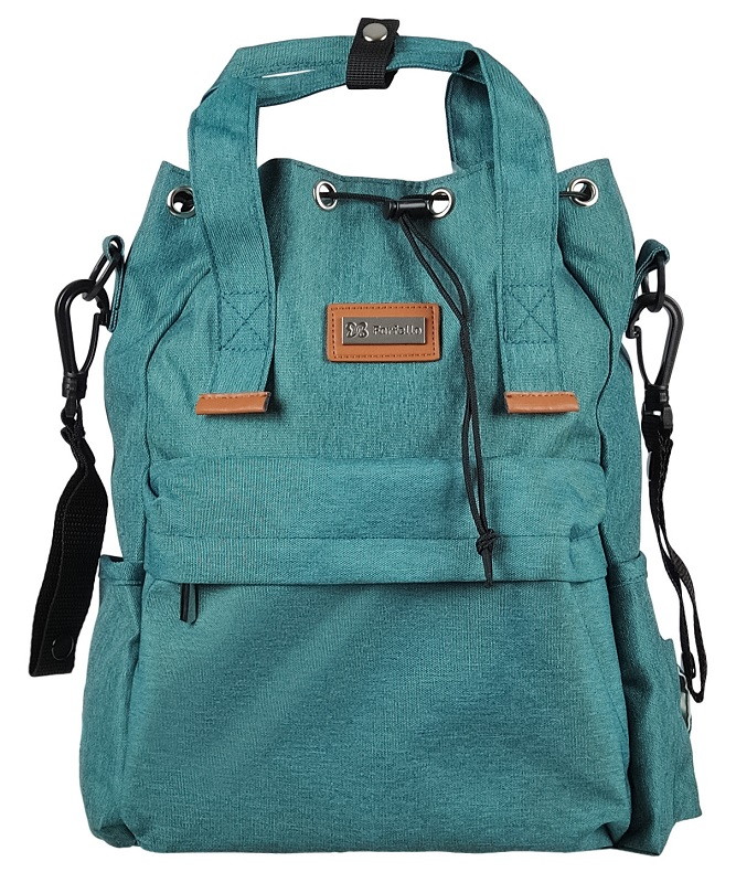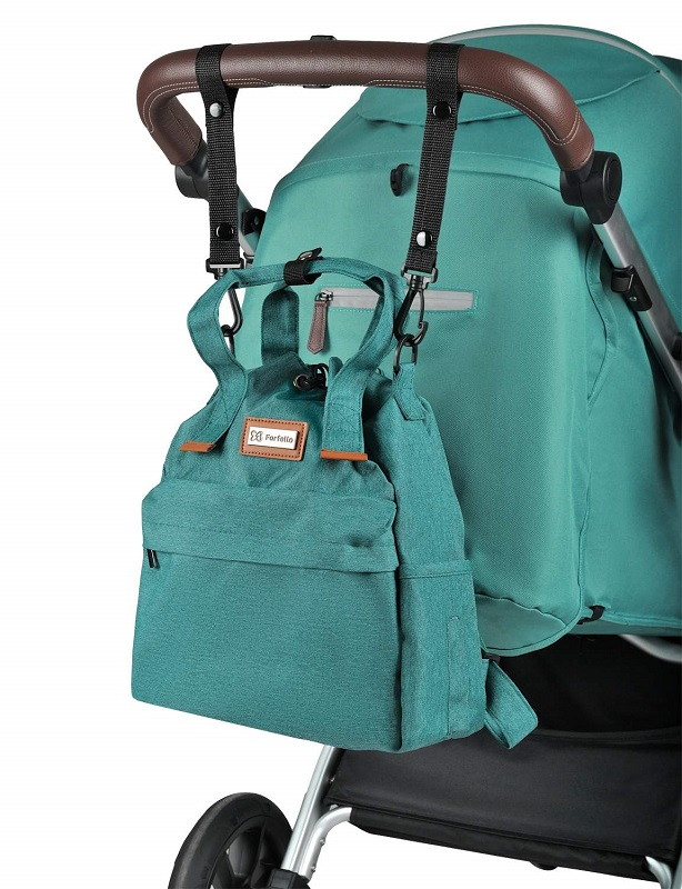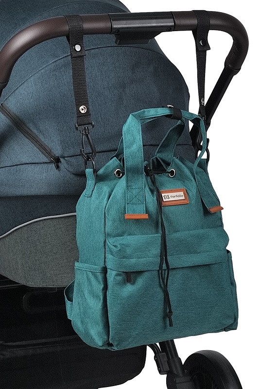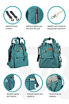 Удобный и лёгкий рюкзак станет незаменимым помощником для мобильных мам. Рюкзак оснащен множеством карманов и отделов: для бутылочек, соски, документов, телефона и шнурком для прикрепления ключей. Также имеется наружный боковой карман для быстрого извлечения влажных салфеток. Рюкзак удобен тем, что его можно носить и на плечах, в руках в виде сумочки или подвесить его на ручку коляски с помощью специальных ремешков на клепках, которые идут в комплекте.