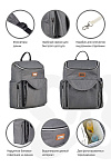 - рюкзак выполнен из качественной водонепроницаемой ткани, оснащен множеством карманов и отделов: для бутылочек, соски, документов, шнурком для ключей