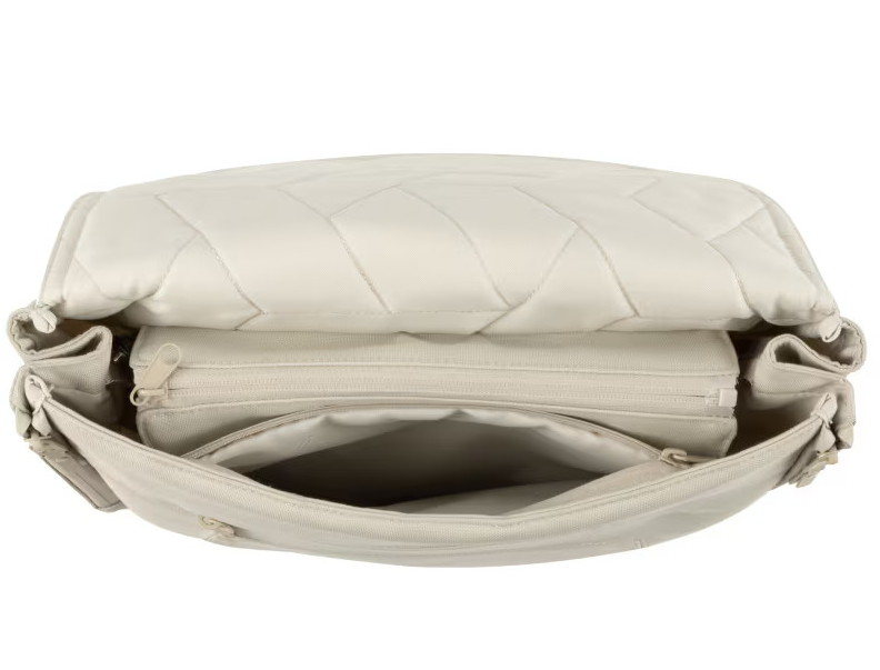 Пеленальный коврик, устойчивый к воде и грязи, гарантирует постоянную готовность к смене подгузника на ходу - в разложенном виде он имеет размер XL, а в сложенном - XS.