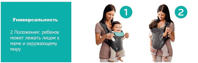 - 2 позиции для переноски младенцев от 3кг. до 12кг. лицом к маме, или наружу, чтобы увидеть мир