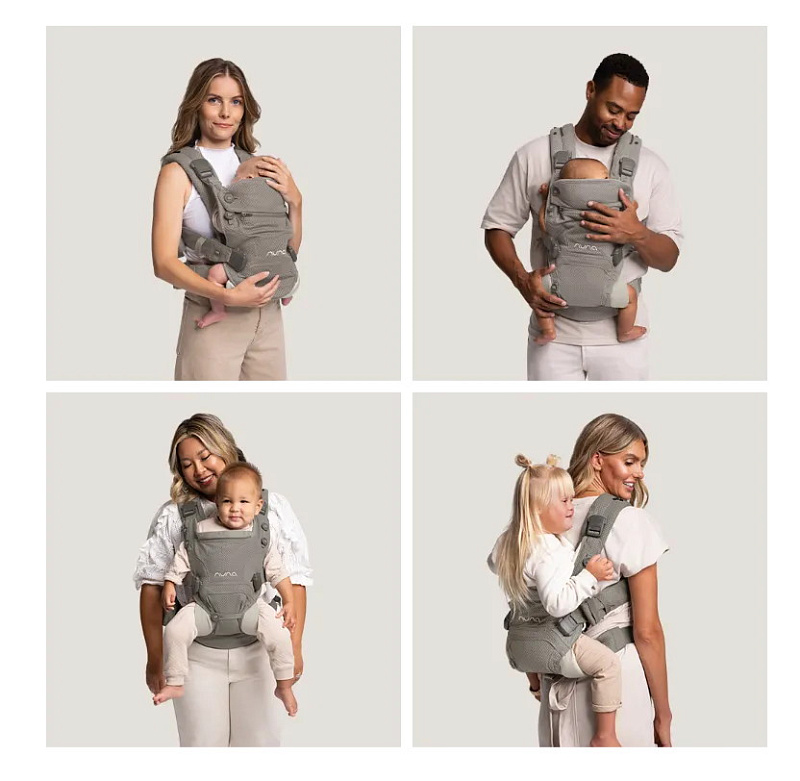 - Четыре положения для переноски обеспечивают эргономичное положение по мере роста ребенка, способствуя здоровому развитию позвоночника и бедер: режим для новорожденных, лицом к себе, лицом от себя, ношение на спине.
