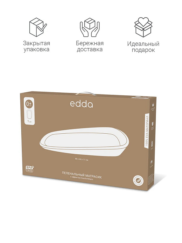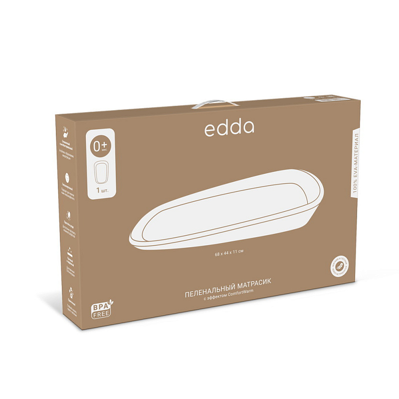 Пеленальный матрасик edda — это практичный и современный аксессуар для ухода за ребёнком. Матрасик выполнен из упругого, гипоаллергенного EVA-материала с эффектом ComfortWarm, поэтому его поверхность всегда мягкая и тёплая. Он прост в уходе: его достаточно протереть влажной салфеткой. Антискользящая поверхность и высокие бортики обеспечивают безопасность и удобное положение во время гигиенических процедур, пеленания или массажа.