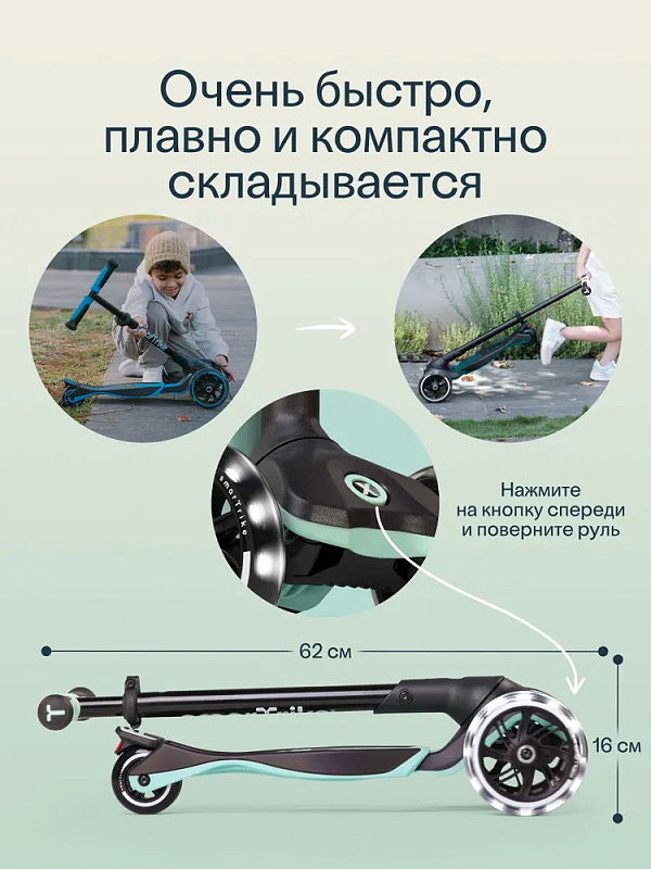 - Механизм складывания одной кнопкой для удобства хранения и транспортировки