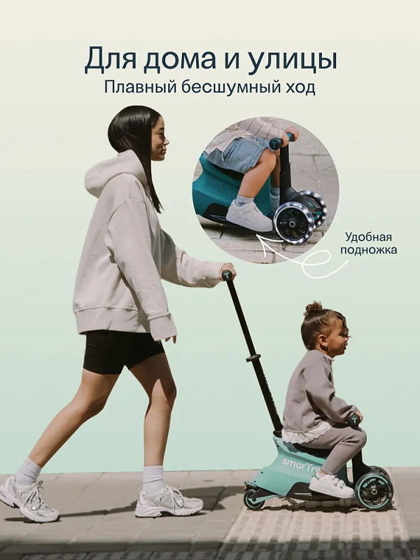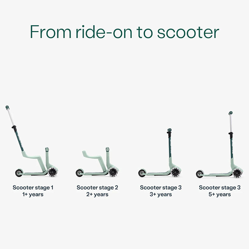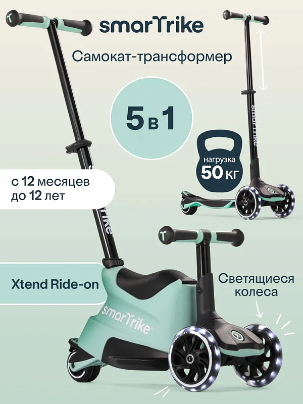 Xtend Mini Ride — это универсальное транспортное средство, которое будет расти вместе с вашим ребёнком от 12 месяцев до 9 лет. Он легко трансформируется из коляски в самокат, что делает его идеальным спутником для активных и весёлых приключений.