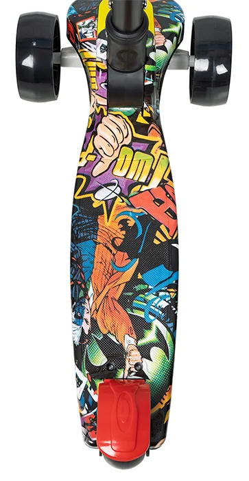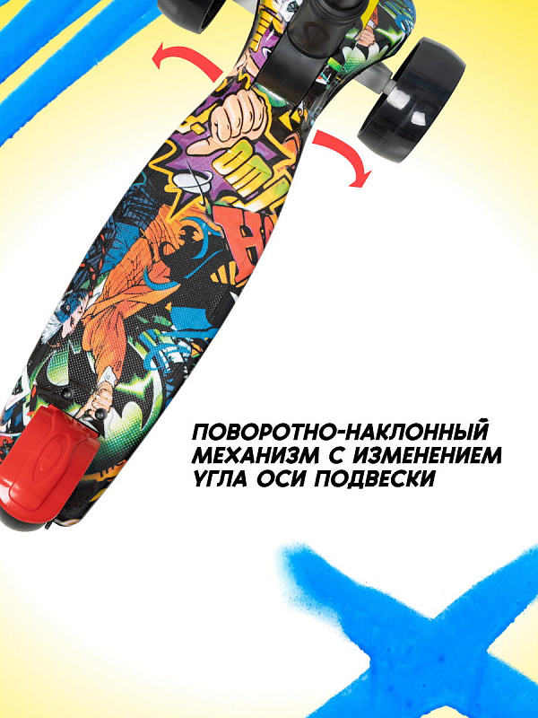 Самокат меняет направление за счет наклона рукоятки в нужную сторону. Широкая платформа позволит ребёнку поставить обе ноги на самокат.