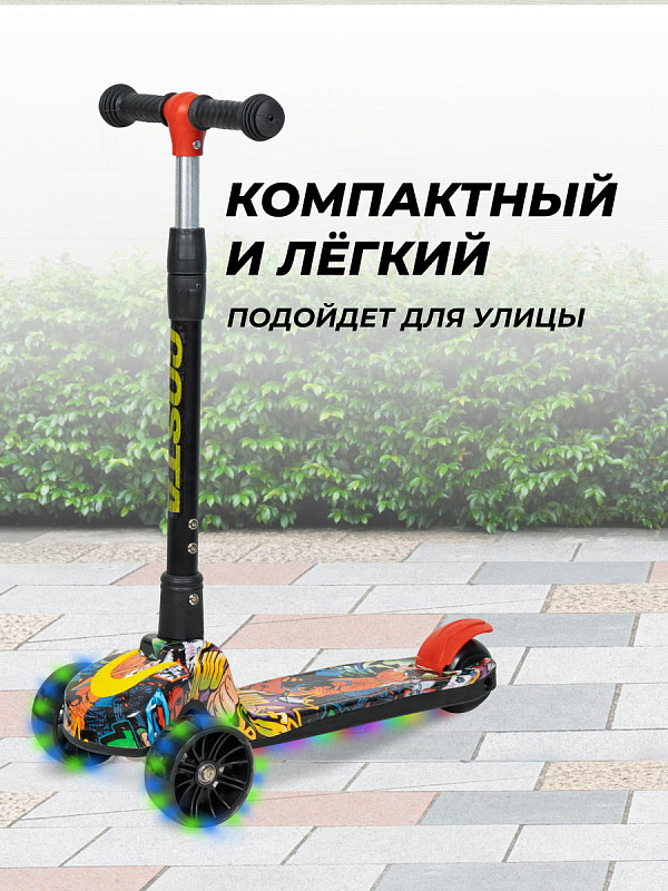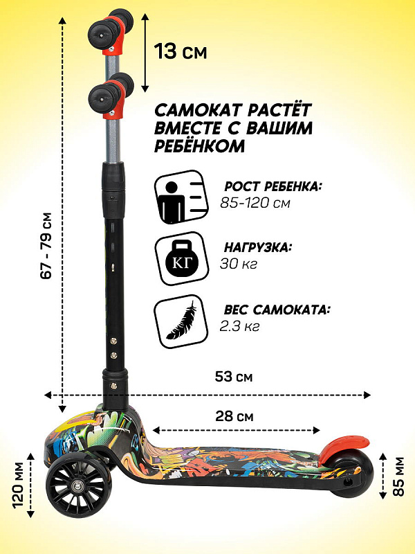 Детский самокат со светящимися колесами AB-13, растет вместе с ребенком и прослужит долго. Самокат помогает развивать координацию и рефлекторные способности ребёнка.