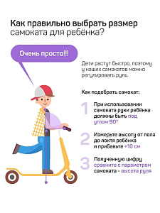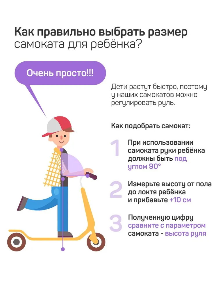 - Регулируемый руль: Высота руля регулируется от 65 до 80 см, что позволяет настроить самокат под рост ребенка.