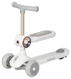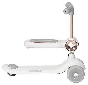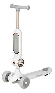 Детский трехколесный самокат трансформер 2 в 1: сиденье встраивается в рулевую стойку, имеет фару для доп. освещения в темное время суток.