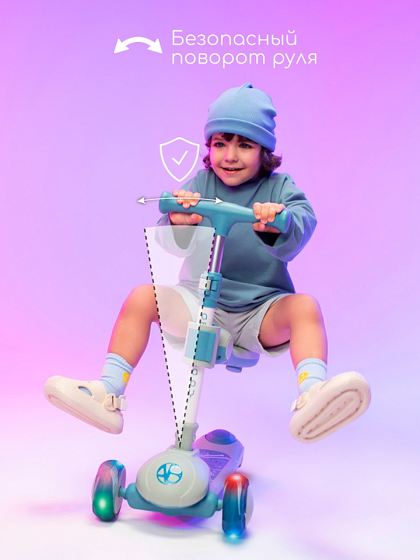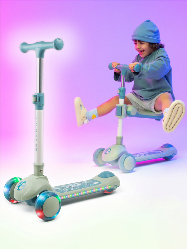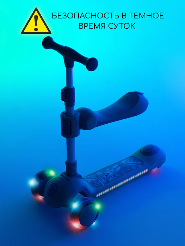 Самокат кикборд AmaroBaby Art 2 в 1 с анатомическим съемным сиденьем - это идеальный выбор для начинающих райдеров. Самокат от 3х лет предназначен для детей ростом от 80 до 120 см. и весом не более 45 кг. Руль и высоту сиденья можно легко настроить под рост ребенка. Само сиденье обеспечивает еще больший комфорт во время длительных прогулок. Самокат беговел имеет 4 встроенные мелодии и подсветку деки. Питание от трех батареек ААА 1,5V (в комплект не входят). Мягкие колеса не только беззвучно едут по дороге, но и светятся при движении, создавая яркий визуальный эффект. Это привлечет внимание окружающих и добавит уверенности ребенку. Самокат детский 3-колесный выполнен из ударопрочных и качественных материалов, таких как армированный полипропилен, что гарантирует прочность и долговечность модели. Рулевая стойка оснащена безопасным механизмом поворота, что облегчает катание и создает дополнительную защиту. Противоскользящие грипсы на ручках предотвращают соскальзывание рук ребенка, а усиленный задний тормоз гарантирует безопасность и легкость управления. Дека имеет специальное противоскользящее покрытие с двумя оригинальными дизайнами: для девочек и для мальчиков. Велобег в сложенном виде имеет длину 61 см. ширину 33 см. высоту 16 см. Самокат светящийся Amarobaby с анатомическим съемным сиденьем - это удобный и безопасный способ для детей насладиться активным отдыхом. Беговел самокат сочетает в себе комфорт, надежность и яркий дизайн.