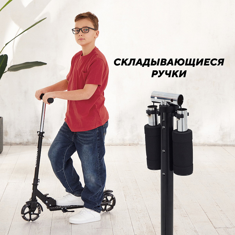 рулевая стойка модели складывается, поэтому самокат максимально комфортно брать с собой в любое путешествие
