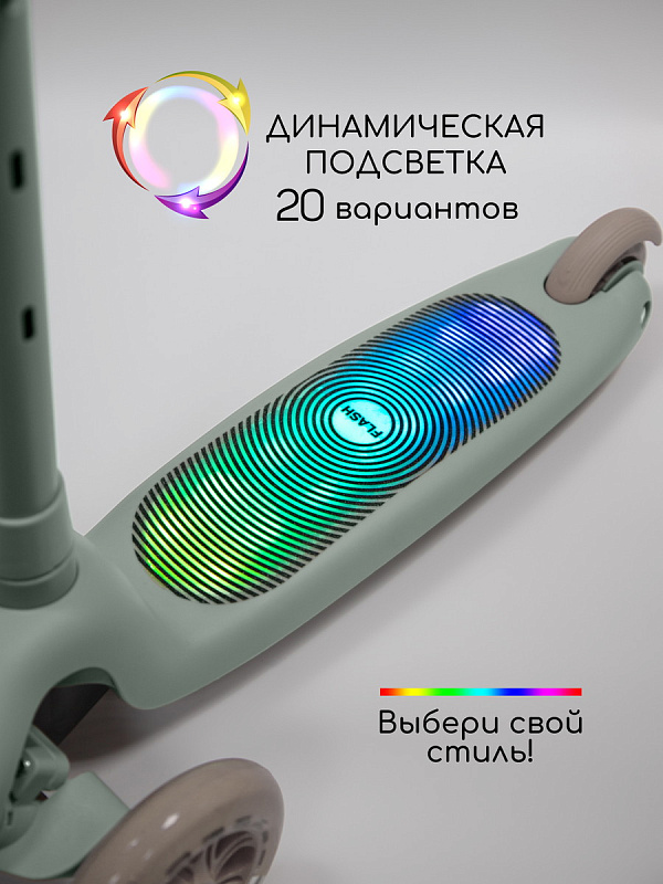 Самокат трехколёсный Amarobaby Flash с подсветкой зеленый