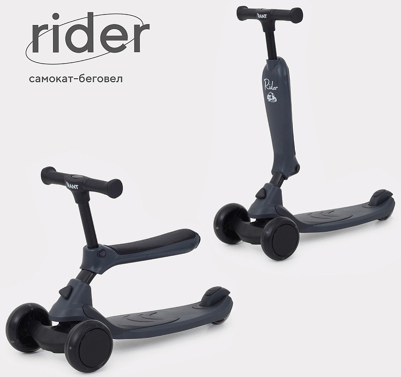 Самокат-беговел Rant Rider серый