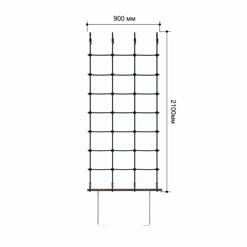 Сетка лаза устанавливается на рукоход спортивного комплекса. Необходимые для монтажа крепежи, а также грунтозацепы поставляются в комплекте. Изделие имеет универсальные габариты 2100*780мм, что позволяет закреплять сетку на комплексах различных размеров. В зависимости от высоты комплекса, игровой объект может быть установлен вертикально под прямым углом или под небольшим наклоном. Надежность фиксации обеспечивает метод монтажа к поверхности – бетонирование на специальные грунтозацепы. Эксплуатация игрового объекта допускается только после полного застывания бетона.