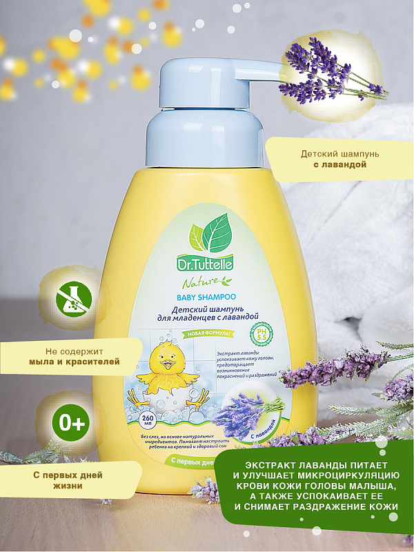 Шампунь для младенцев Dr. Tuttelle с лавандой с дозатором 260 мл