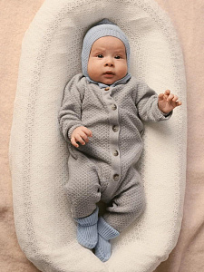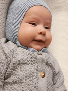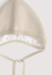 Шапочка выполнена из нежной пряжи - 100% хлопка, имеющего сертификат OEKO-tex 100, внутри подкладка из нежнейшего 100% хлопка, также сертифицированного согласно стандарту OEKO-tex 100.