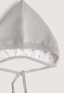 Шапочка выполнена из нежной пряжи - 100% хлопка, имеющего сертификат OEKO-tex 100, внутри подкладка из нежнейшего 100% хлопка, также сертифицированного согласно стандарту OEKO-tex 100.