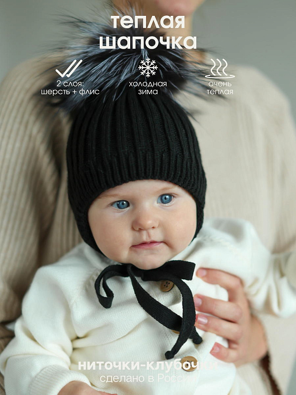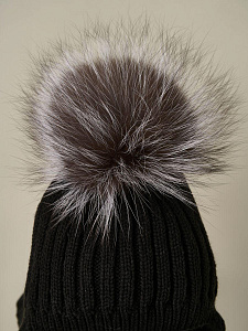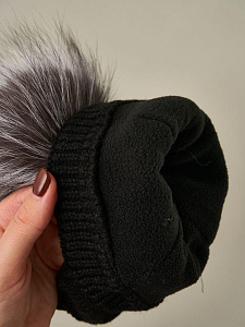 Шапка Little Star Лапша подклад флис, помпон чернобурка 5601 черный 38