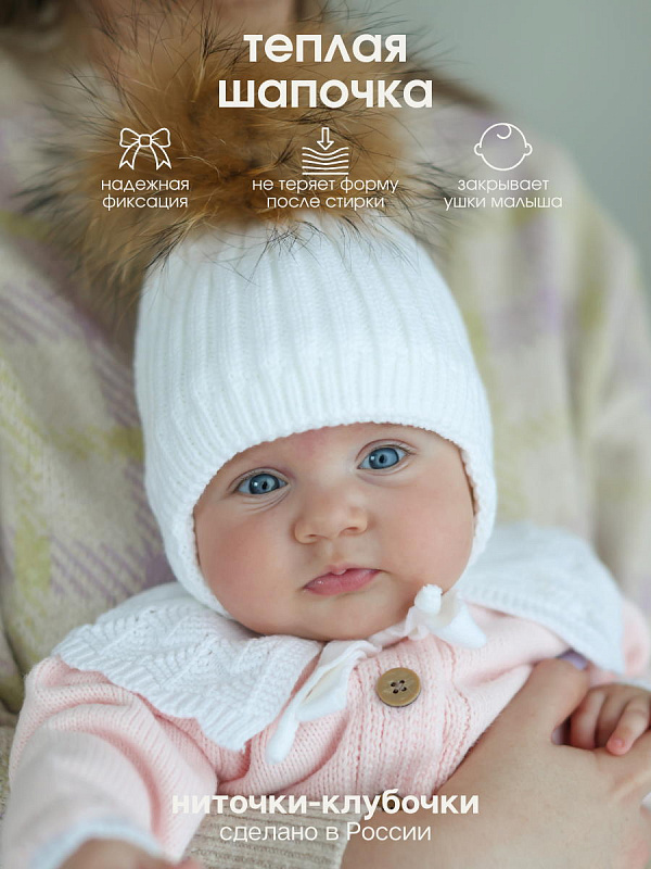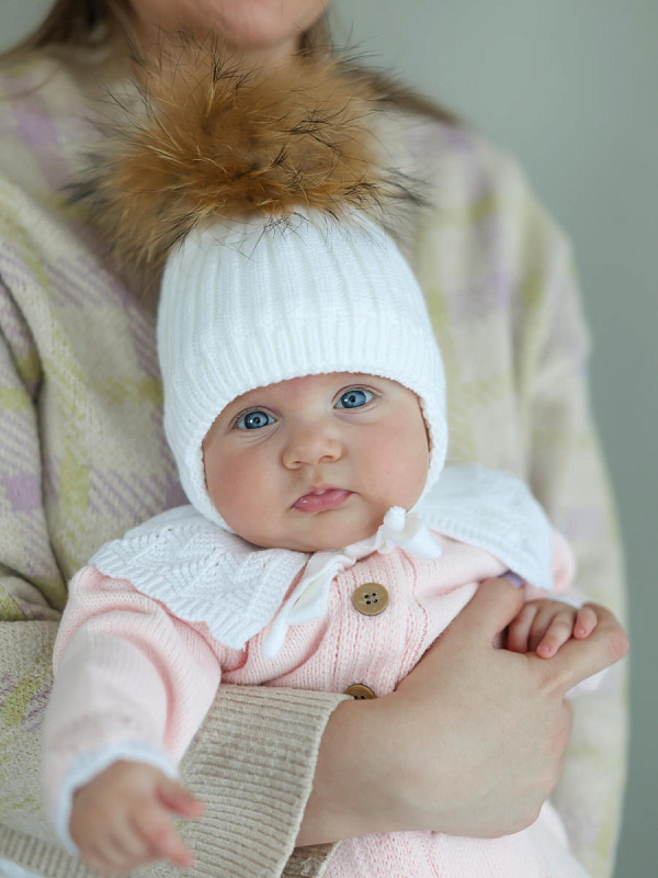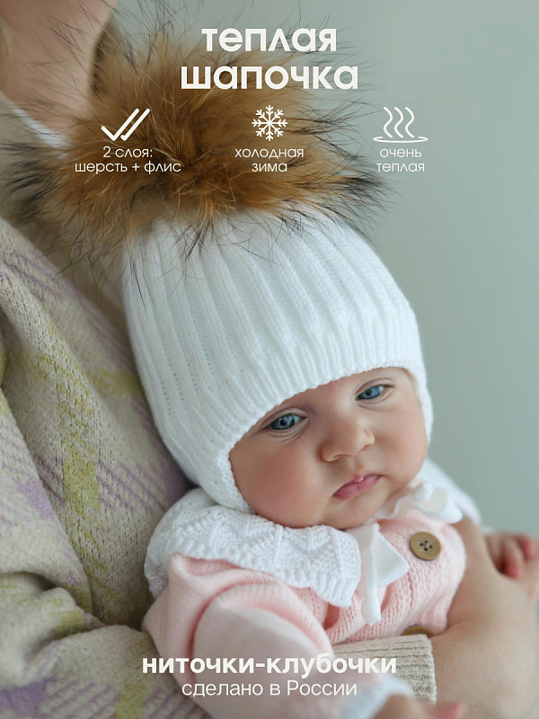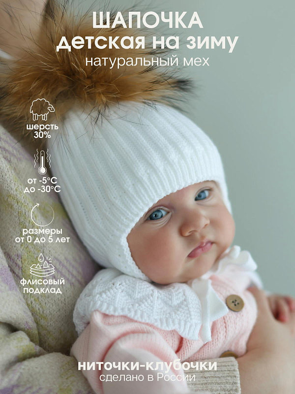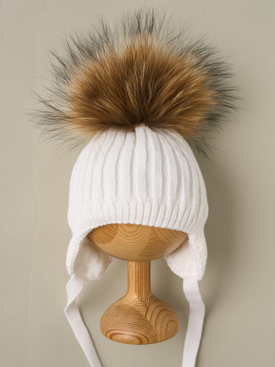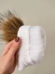Шапка Little Star Лапша подклад флис, помпон енот 5601 (ЧЗ-нк) белый 38
