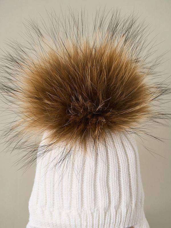 Зимняя шапочка с подкладой из флиса и натуральным бумбоном из меха енота.