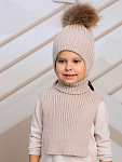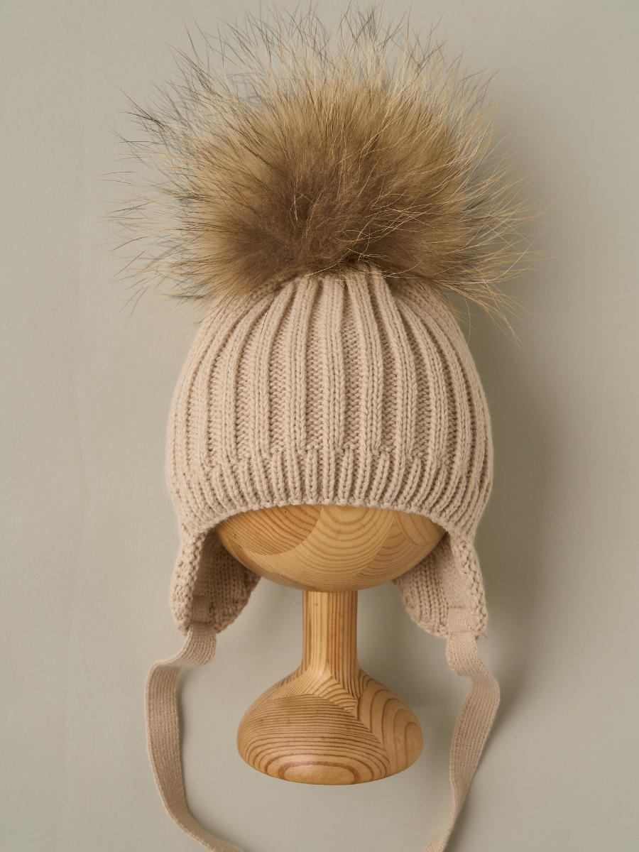 Шапка Little Star Лапша подклад флис, помпон енот 5601 (ЧЗ-нк) бежевый лайт 38