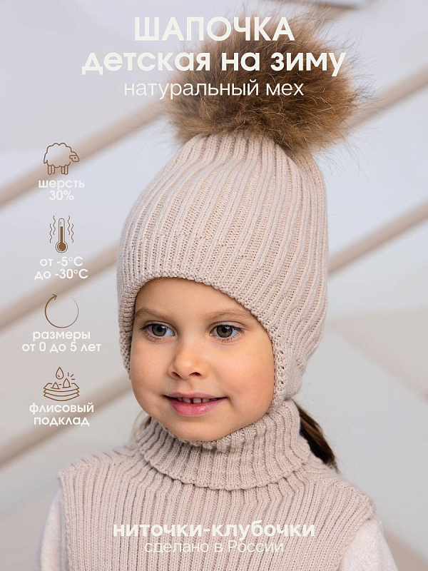 Шапка Little Star Лапша подклад флис, помпон енот 5601 (ЧЗ-нк) бежевый лайт 38Нет оценокХарактеристики