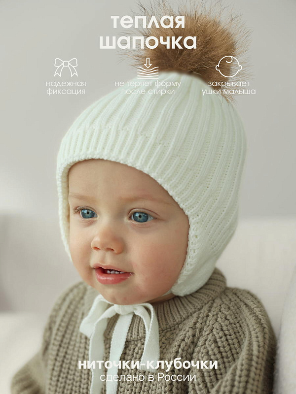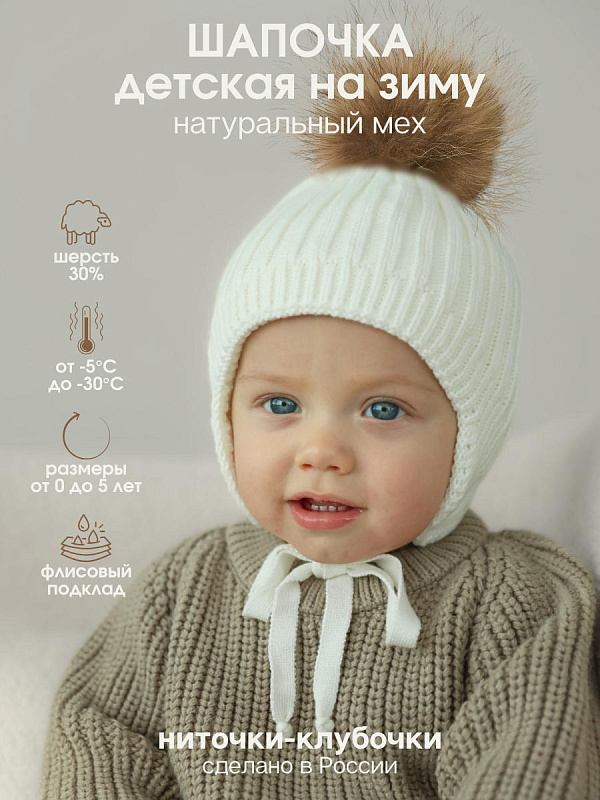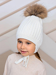 Шапка Little Star Лапша подклад флис, помпон енот 5601 (ЧЗ-нк) крем, 38 см