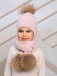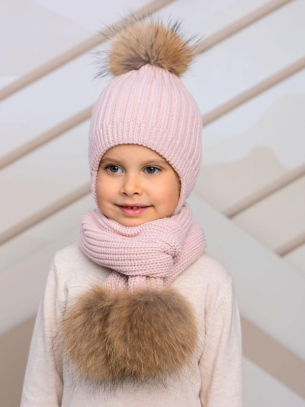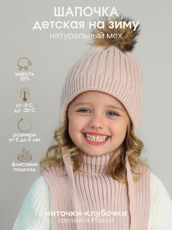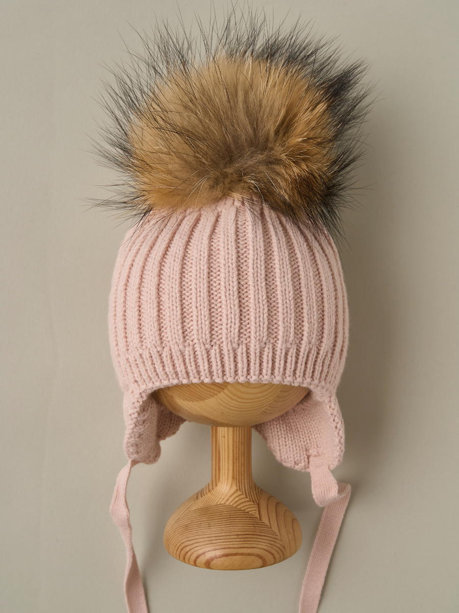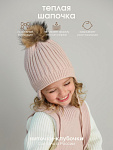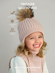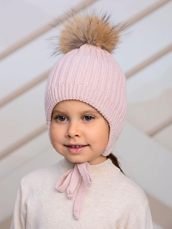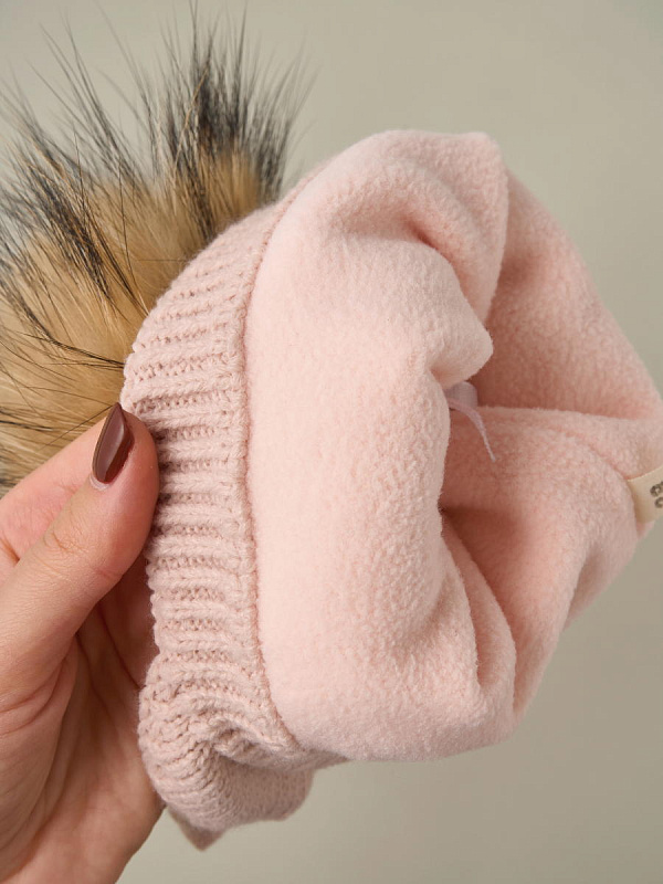 Шапка Little Star Лапша подклад флис, помпон енот 5601 (ЧЗ-нк) пудра 38