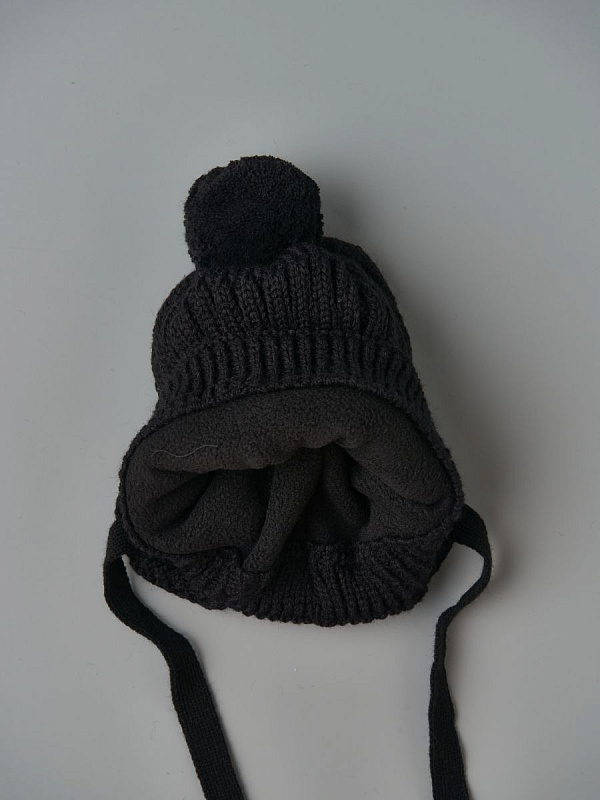 Шапка Little Star Лапша подклад флис, помпон вязаный 5603 черный 38