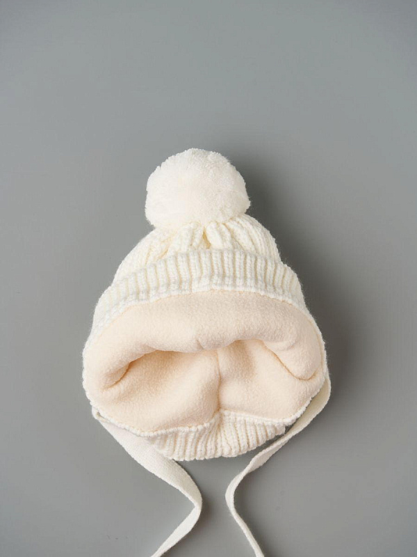 Шапка Little Star Лапша подклад флис, помпон вязаный 5603 (ЧЗ-нк) экрю 7159, 38 см 38