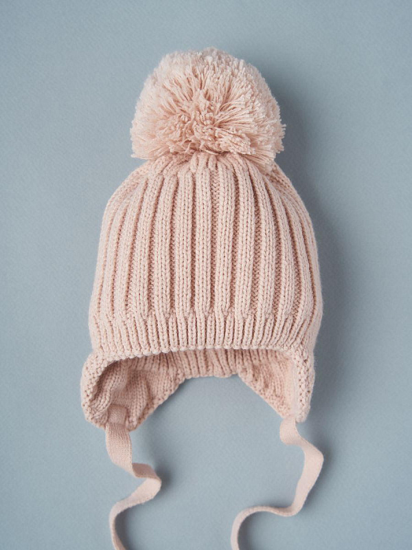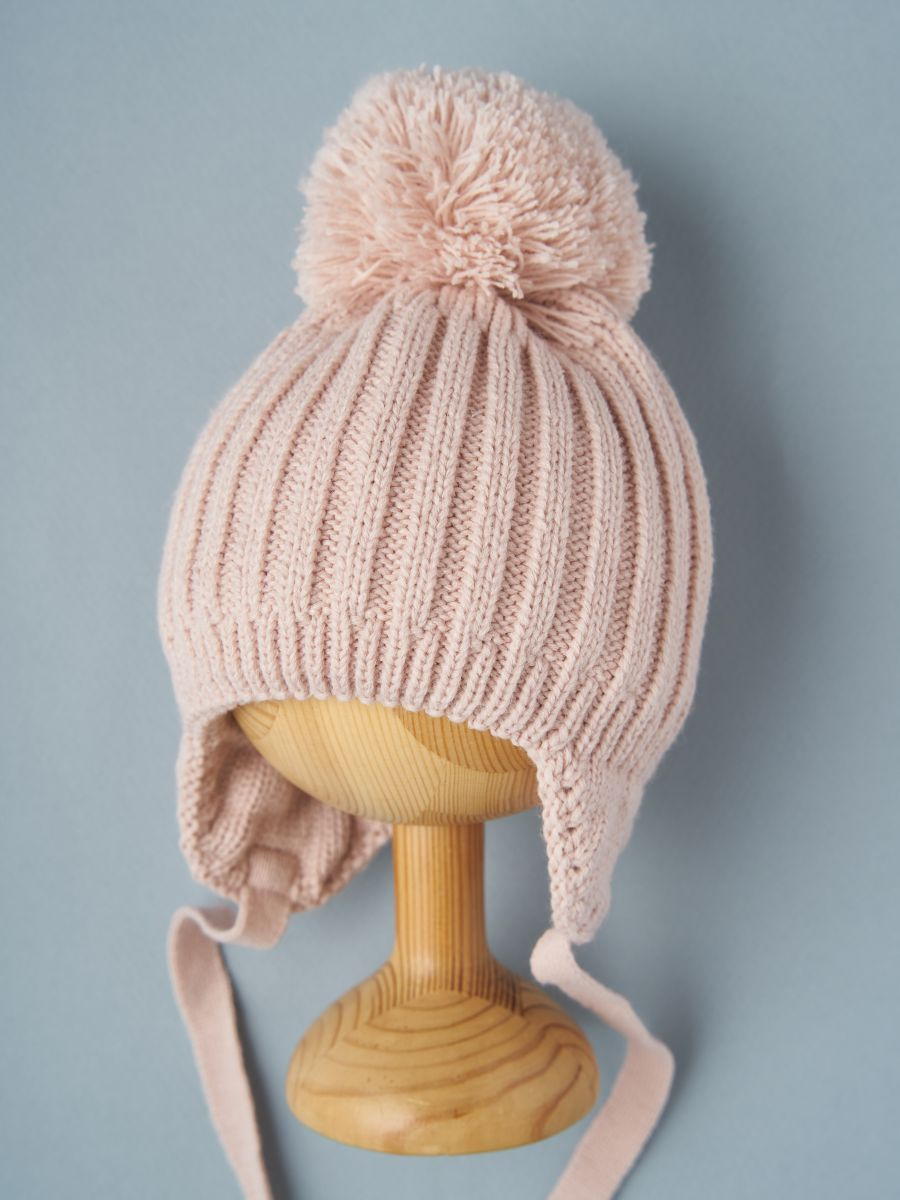 Шапка Little Star Лапша подклад флис, помпон вязаный 5603 (ЧЗ-нк) пудра 38