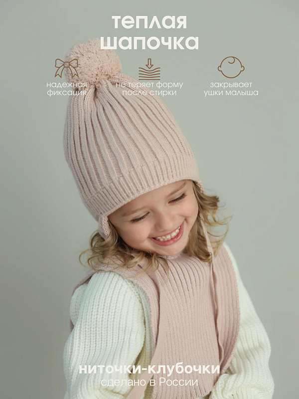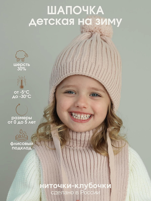 Теплая шапка для малышей на завязках бренда "Ниточки- Клубочки" незаменимый аксессуар для детской одежды в зимний и демисезонный периоды. Шапочка для новорожденных с флисовым подкладом и вязаным помпоном на позднюю осень, зиму, весну отлично прилегает по головке малыша, закрывает ушки, лобик и прекрасно защищает от холода. Детские шапки выполнены из высококачественной смесовой пряжи с хлопком 20%, шерстью 30% и ПАН 50%. Хлопок придает изделию нежность, шерсть делает его мягкими и теплыми, а ПАН - неприхотливыми в уходе. Наши шапочки мягкие, нежные не колются, идеально подходят для повседневной носки, для длительных прогулок на свежем воздухе. Рекомендации по уходу вязаных изделий: - Вязаные вещи не любят выкручиваний и трений! - Только деликатная стирка в режимах «шерсть», «деликатный» или «ручной» (20-30*, отжим не более 800 оборотов). - Используйте мягкие средства для шерстяных изделий в жидкой форме. - Не застирывайте пятна. Чтобы удалить их, положите испачканную вещь на полотенце. Нанесите на пятно выбранный вами пятновыводитель (без отбеливателя), а затем начните промачивать его чистым полотенцем; - Сушите вещи в горизонтальном положении избегая образования заломов. Сушка в сушильной машине разрешена и приветствуется на самой минимальной температуре; - При трении все же возможно образование катышек, избавиться от них очень легко липкой лентой, бритвой или машинкой для удаления катышек. Не забывайте, что правильный уход поможет надолго сохранить первоначальный вид! Переходите в наши бренд Little Star, чтобы ознакомиться с нашим ассортиментом. С наилучшими пожеланиями Вам и Вашему маленькому Чуду!