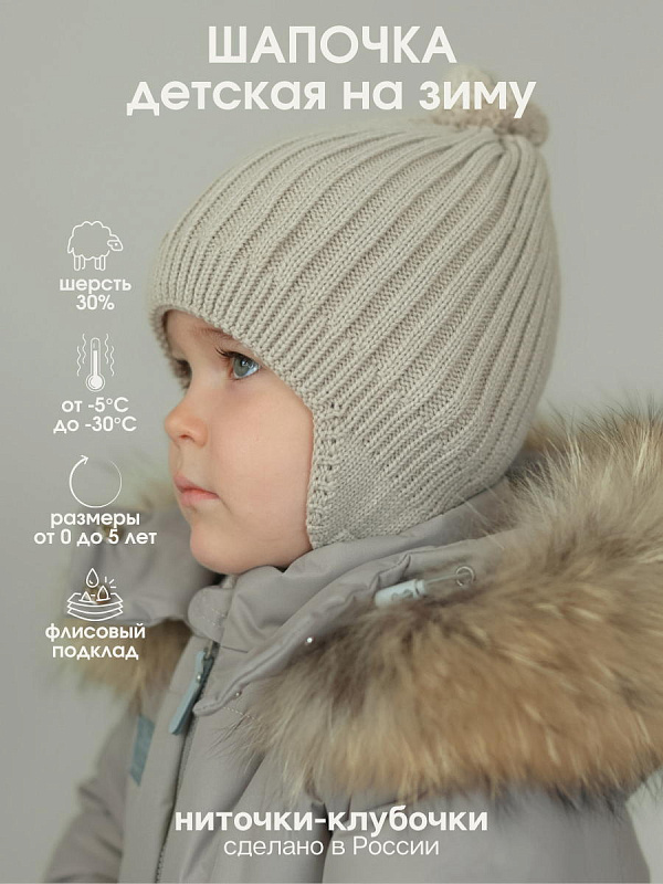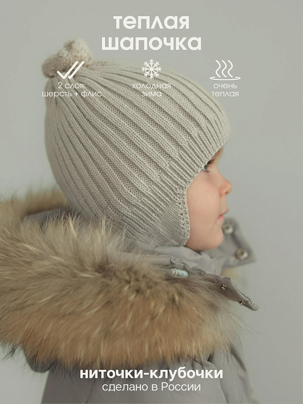 Теплая шапка для малышей на завязках бренда "Ниточки- Клубочки" незаменимый аксессуар для детской одежды в зимний и демисезонный периоды. Шапочка для новорожденных с флисовым подкладом и вязаным помпоном на позднюю осень, зиму, весну отлично прилегает по головке малыша, закрывает ушки, лобик и прекрасно защищает от холода. Детские шапки выполнены из высококачественной смесовой пряжи с хлопком 20%, шерстью 30% и ПАН 50%. Хлопок придает изделию нежность, шерсть делает его мягкими и теплыми, а ПАН - неприхотливыми в уходе. Наши шапочки мягкие, нежные не колются, идеально подходят для повседневной носки, для длительных прогулок на свежем воздухе. Рекомендации по уходу вязаных изделий: - Вязаные вещи не любят выкручиваний и трений! - Только деликатная стирка в режимах «шерсть», «деликатный» или «ручной» (20-30*, отжим не более 800 оборотов). - Используйте мягкие средства для шерстяных изделий в жидкой форме. - Не застирывайте пятна. Чтобы удалить их, положите испачканную вещь на полотенце. Нанесите на пятно выбранный вами пятновыводитель (без отбеливателя), а затем начните промачивать его чистым полотенцем; - Сушите вещи в горизонтальном положении избегая образования заломов. Сушка в сушильной машине разрешена и приветствуется на самой минимальной температуре; - При трении все же возможно образование катышек, избавиться от них очень легко липкой лентой, бритвой или машинкой для удаления катышек. Не забывайте, что правильный уход поможет надолго сохранить первоначальный вид! Переходите в наши бренд Little Star, чтобы ознакомиться с нашим ассортиментом. С наилучшими пожеланиями Вам и Вашему маленькому Чуду!