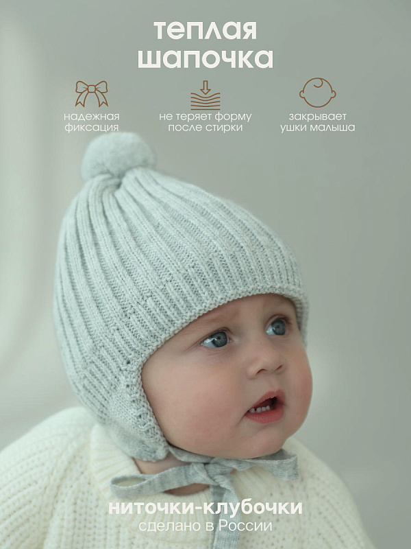 Теплая шапка для малышей на завязках бренда "Ниточки- Клубочки" незаменимый аксессуар для детской одежды в зимний и демисезонный периоды. Шапочка для новорожденных с флисовым подкладом и вязаным помпоном на позднюю осень, зиму, весну отлично прилегает по головке малыша, закрывает ушки, лобик и прекрасно защищает от холода. Детские шапки выполнены из высококачественной смесовой пряжи с хлопком 20%, шерстью 30% и ПАН 50%. Хлопок придает изделию нежность, шерсть делает его мягкими и теплыми, а ПАН - неприхотливыми в уходе. Наши шапочки мягкие, нежные не колются, идеально подходят для повседневной носки, для длительных прогулок на свежем воздухе. Рекомендации по уходу вязаных изделий: - Вязаные вещи не любят выкручиваний и трений! - Только деликатная стирка в режимах «шерсть», «деликатный» или «ручной» (20-30*, отжим не более 800 оборотов). - Используйте мягкие средства для шерстяных изделий в жидкой форме. - Не застирывайте пятна. Чтобы удалить их, положите испачканную вещь на полотенце. Нанесите на пятно выбранный вами пятновыводитель (без отбеливателя), а затем начните промачивать его чистым полотенцем; - Сушите вещи в горизонтальном положении избегая образования заломов. Сушка в сушильной машине разрешена и приветствуется на самой минимальной температуре; - При трении все же возможно образование катышек, избавиться от них очень легко липкой лентой, бритвой или машинкой для удаления катышек. Не забывайте, что правильный уход поможет надолго сохранить первоначальный вид! Переходите в наши бренд Little Star, чтобы ознакомиться с нашим ассортиментом. С наилучшими пожеланиями Вам и Вашему маленькому Чуду!