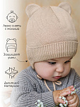 Шапка вязаная AmaroBaby Pure Love Bear Winter зимняя с утеплителем бежевая 38
